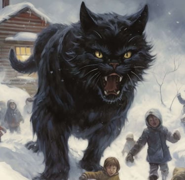 So, the next time you find yourself snuggled up by the fire with a hot drink, spare a thought for the Yule Cat. And, if you happen to be in Iceland during the holiday season, you might just spot the glowing eyes of this legendary beast watching over the snowy landscape, making sure that everyone has worked hard enough to deserve their new clothes—or at least that no one is too lazy to avoid a run-in with the notorious Yule Cat!