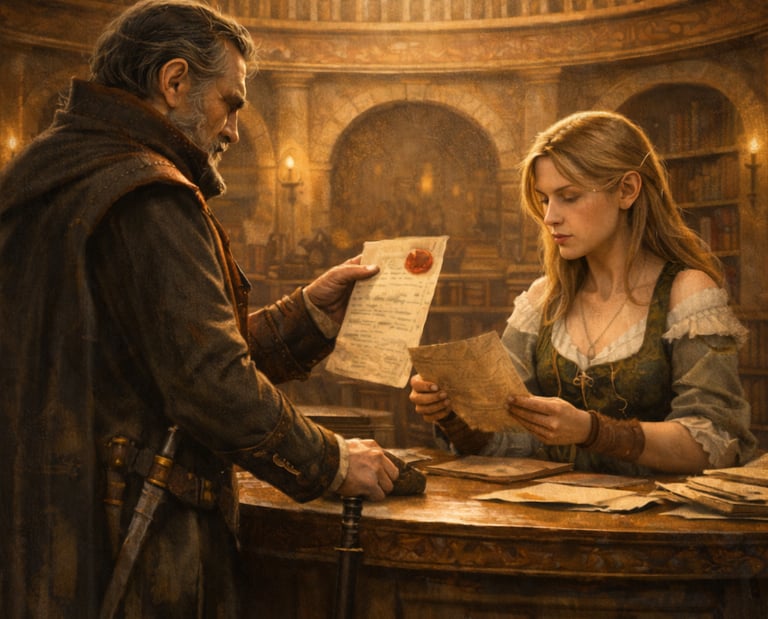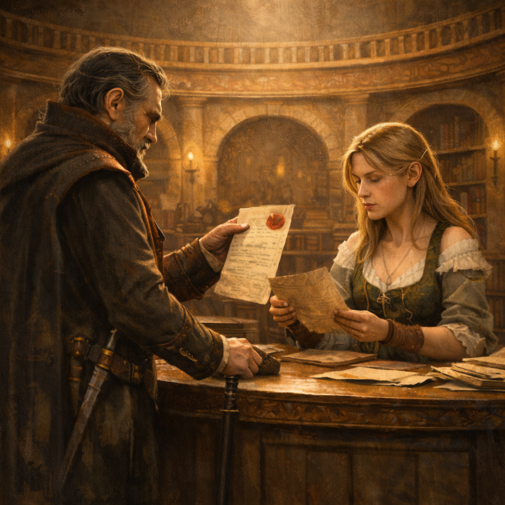 When a visiting scholar arrives at the domed halls of the Carnelian Library requesting "The Sanguine Mask", a banned treatise on the legendary skin-stealers of Nayaradia, suspicion ripples through the quiet marble atrium.